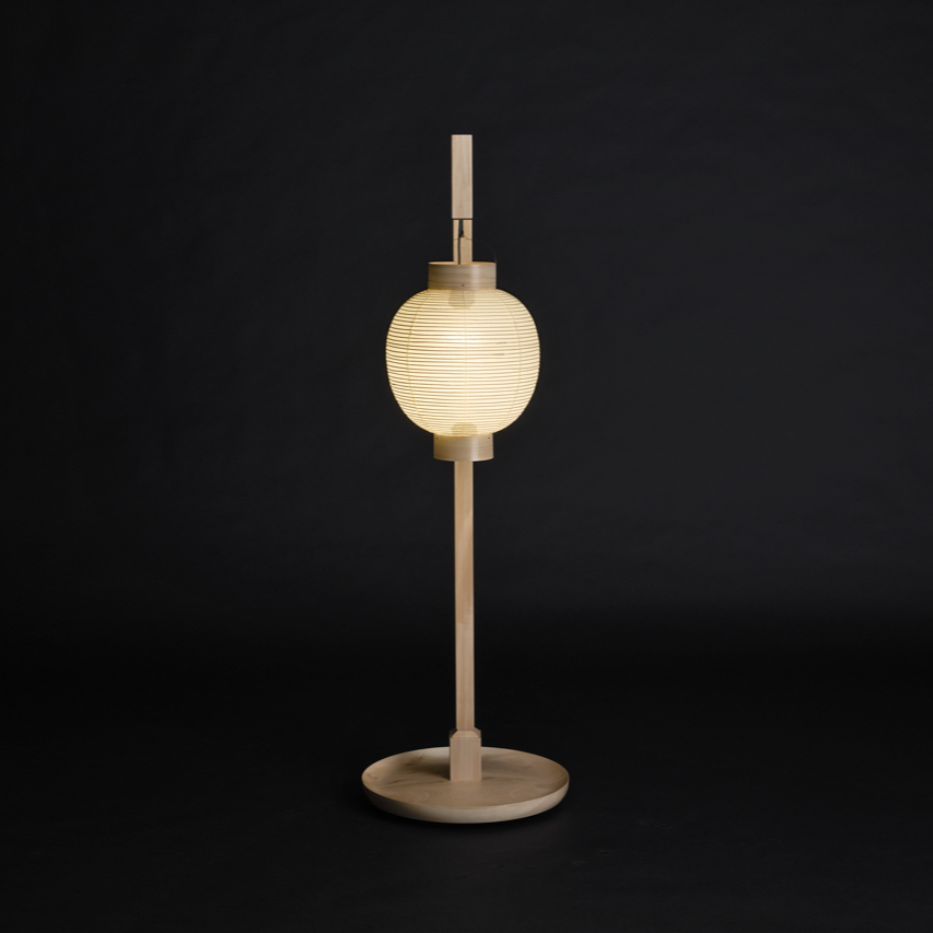 柔らかな光を灯す、雪洞提灯のようなフロアスタンド。