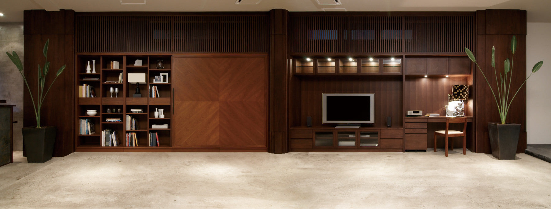 Rather than simply making storage space in your walls, design them in. This is a notion of wall storage design that cannot be achieved with prefabrication and is better described in its designated space as artwork.