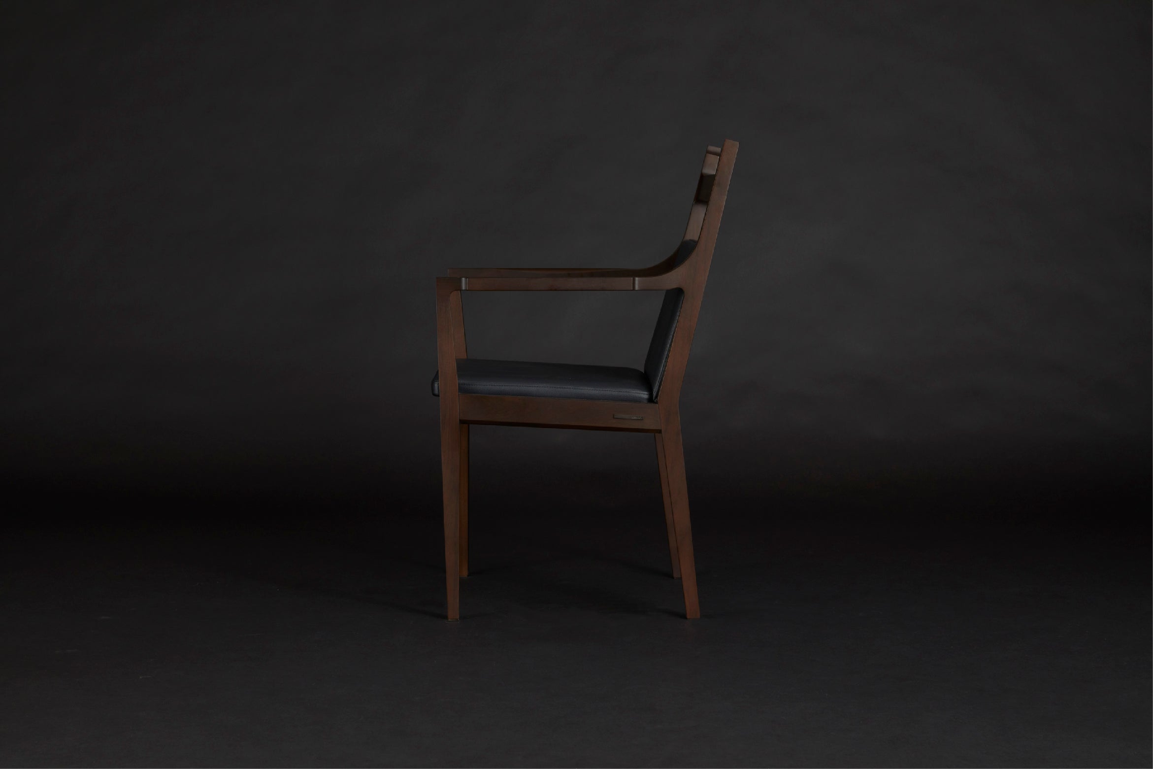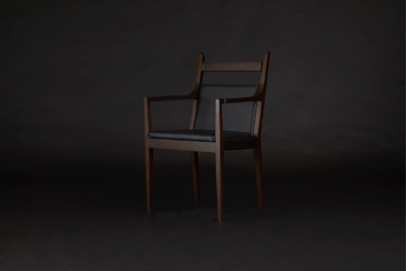 A chair named for wickedness. The horns protruding from the lower back cushion are certainly impressive. The carved arms betray a slight, demonstrating ergonomic tilt.