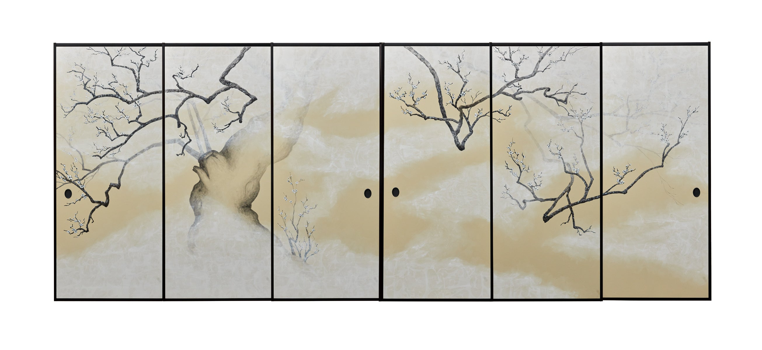 Japanese paintings on fusuma, traditional Japanese architectural fittings crafted by skillful artisans.