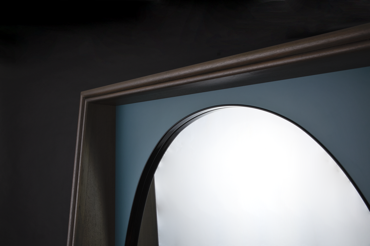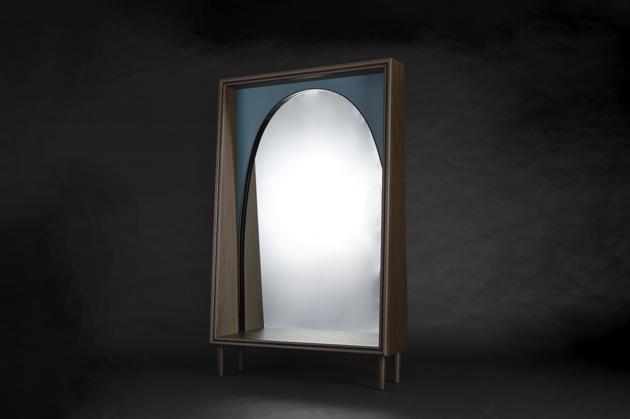 Looking up, a pale face with a bluish hue emerged from the darkness. After blinking a few times, it appears to be a standing mirror. Unlike wall-mounted mirrors, it is freestanding. Its design could only be described as a synthesis of classic and modern at its highest form. There was a strange magnetic field in the murky color of the space between the mirror and the wooden frame. At that moment, I heard a voice calling me from behind.