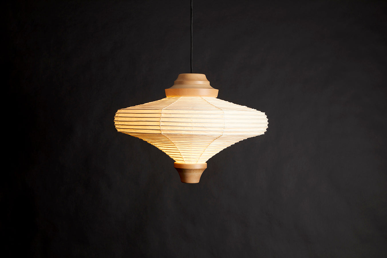 These series of lights are designed with the motif of a Japanese spinning toy. The light is created by skilled craftsmen of Japanese Traditional Lighting named “Chouchin”and craftsmen of Japanese traditoinal spinning toy. We could definitely say this is the true form of Japanese Chouchin.